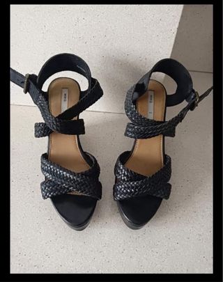 Sandalias Zara Tacón Plataforma Negro Talla 37