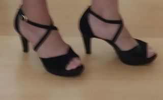 Sandalias con tacón fino, puestas un rato nada más y con su caja original. El precio de venta eran 108€. Son de piel, marca Café Noir, muy buena calidad.