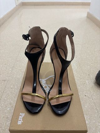 Tacones Christian Louboutin Negro y Dorado
