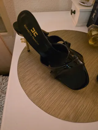 Sandalias nuevas de poli piel sin uso para mujer talla 37 pero son estrechas y van bien para un 36 que es mi talla normal, son monísimas con tachuelas doradas en los laterales en perfecto estado.