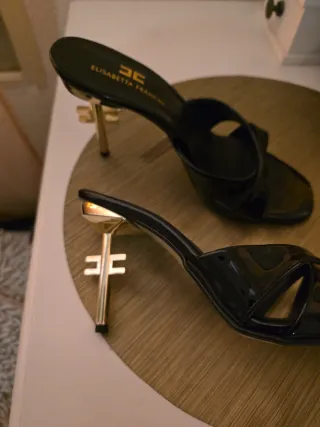 Sandalia tacón Elisabetta Franchi negra y dorada
