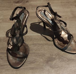 Sandalias de tacón doradas de segunda mano Ferrol