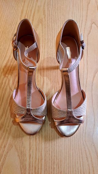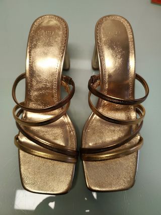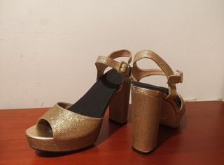 Zapatoss tacón dorado y sandalias mujer número 36