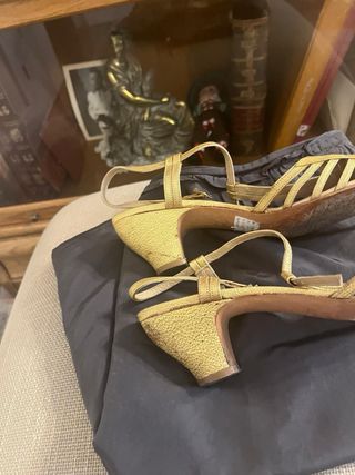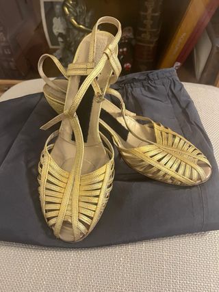 Sandalias Latouche de tacón con bolsa guardapolvos talla 39 con tonalidades doradas tienen alguna señal de uso NO ES NEGOCIABLE ❌