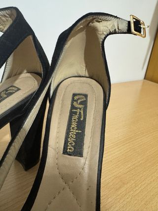Sandalias, marca Anna Field, usadas en una sola ocasión; prácticamente nuevas. Los tacones tienen una altura de 5,5cm y las tapas están en perfecto estado. Son cómodas de llevar gracias a la ligera altura del tacón, que estiliza la pierna, y a la pulsera con la que agarra el tobillo, que dispone de 3 posiciones para su correcto amarre. Entrega gratis en Ávila y Palencia