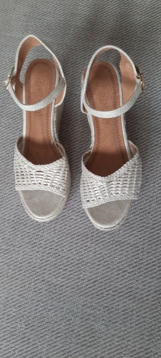 Nuevas,color crudo dorado,8cm de tacón y 3cm de cuña