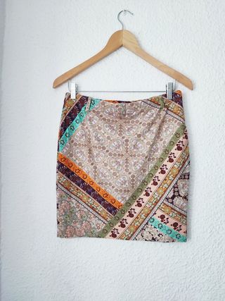 🌟 Despierta tu espíritu bohemio con esta falda estampada de Trucco, donde los colores tierra y los patrones geométricos se encuentran para crear una pieza que habla de aventura y estilo. Perfecta para un look casual con sandalias o para elevar tu outfit con tacones y accesorios dorados. ¡Dale vida a tu armario y conquista cada paso con personalidad y chispa!