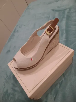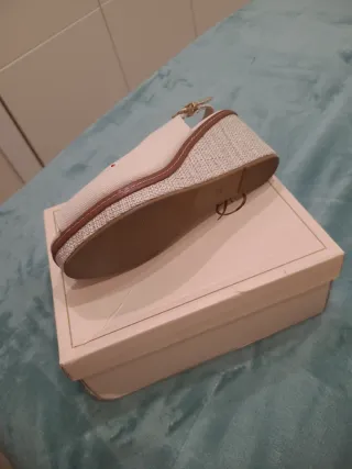 8 cm de tacon. Cuña verano beige y marrón talla 38