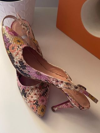 Tacones slingback estampado serpiente floral