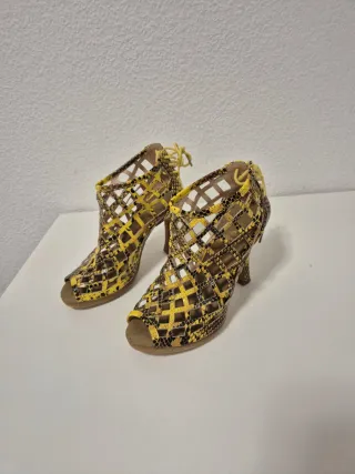 Sandalias de tacón con un diseño abierto y atrevido. - Estilo de rejilla. - Estampado de serpiente. - Cierre con cordones. Marca Feeling dance Muy comodas