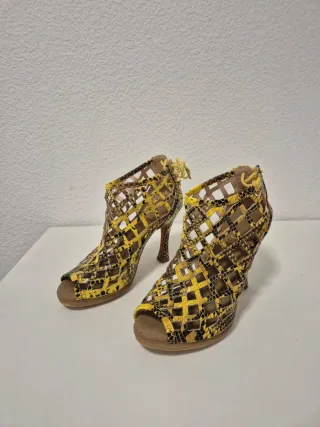 Zapatos de tacón amarillos y multicolor
