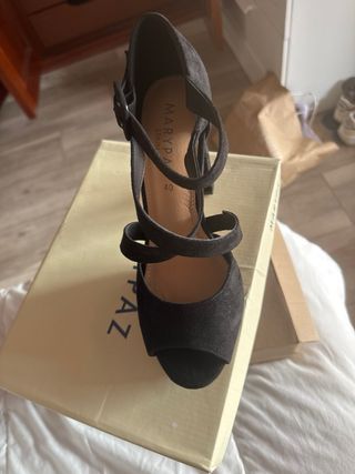 Sandalias tacón (8cm aprox),con plataforma,antelina negro,talla 38 ,Marca Marypaz,nuevas a estrenar.