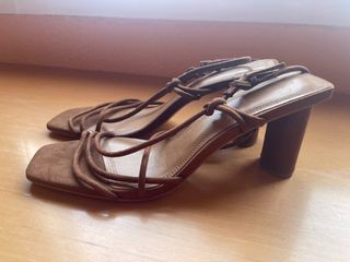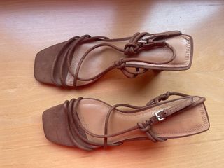 Vendo sandalias de tacón talla 38 de Stradivarius por falta de uso. El tacón mide sobre 9 centímetros y medio. Color rosa palo