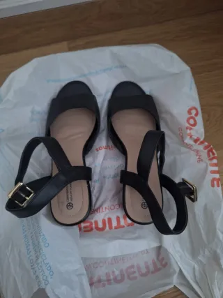 Sandalias de tacón grueso con dos tiras - Talla 38. - Color negro. - Marca Lefties. - Con etiqueta.