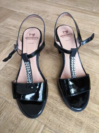 Preciosas sandalias negras de la marca Piccola Piu, talla 38. Tacón ancho y cómodo de unos 5 cm aprox., perfectas para eventos, trabajo o salir. Las he usado solo 3-4 veces, están en perfecto estado (como se ve en las fotos). Las vendo porque me resultan justas de talla. 💰 Precio original: 25,99 € 📍 Precio ahora: 18 € Entrega en mano o envío por Wallapop.