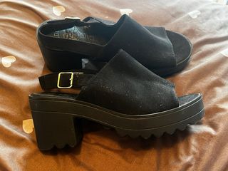 Sandalias negras de tacón de 4 cm. Hechas en piel y suela de goma. Nuevas y cómodas