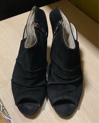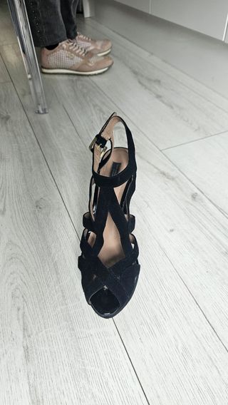 sandalias de ante negro con un poco de plataforma, muy cómodas, utilizadas en una ocasión para un evento