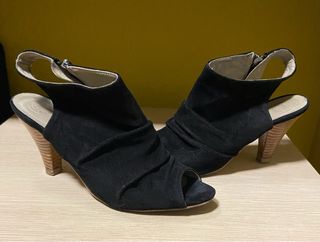 Usadas una vez. Sandalias de tacón negras de ante. Ideales para cualquier ocasión. - Tacón grueso y cómodo. - Diseño elegante y sencillo. - Material: ante.