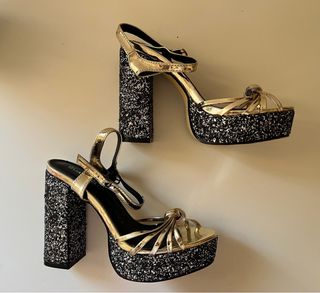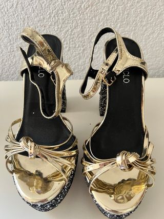 Tacones dorados con brillos negros