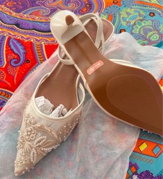 Elegantes sandalias con un diseño delicado y adornos. Para alguna ocasión especial, bautizo, boda o una fiesta queda perfecto. - Acabado en color blanco y Beige. - Talla 42. - Sin estrenar