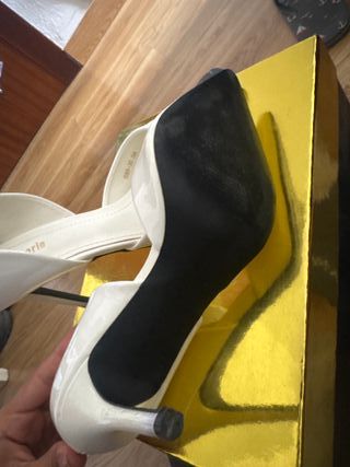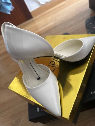 Tacones elegantes en color blanco, en excelente estado. - Diseño de punta afilada. - Tacón de aguja. - Acabado brillante.
