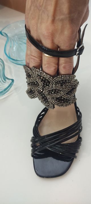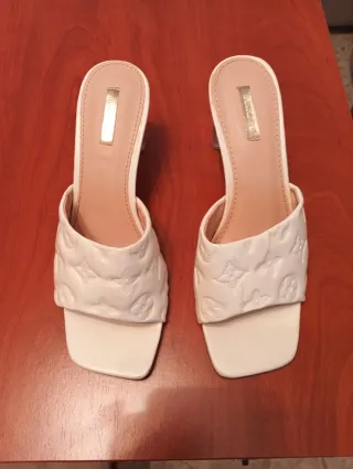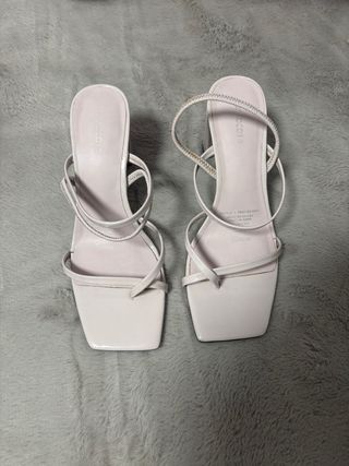 sandalias blancas d tacon muy comodas (no se usaron nunca pero en la ultima foto se ve la tira un poco despellejada )