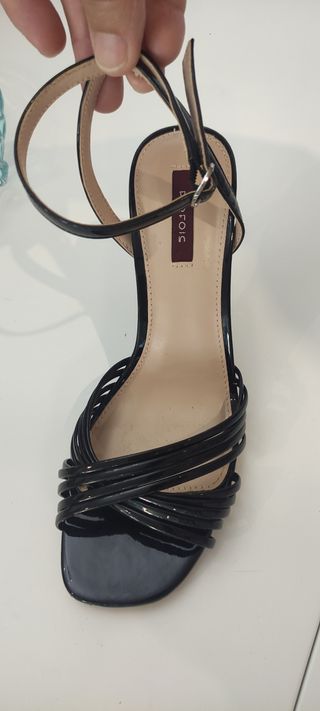 Elegantes sandalias de tacón con un diseño llamativo. Altura tacón 12 cm Usados en tan solo dos ocasiones - Tira de tobillo ajustable. - Plataforma delantera. - Tacón fino con acabado brillante.