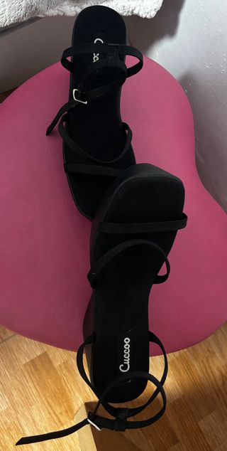 Sandalias de tacón de 11 cm y plataforma de color negro con un bonito cruce en el talón. Muy cómodas Número 39