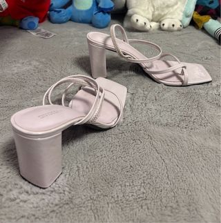 Tacones elegantes con un diseño de tiras finas y un tacón cuadrado. El color lila les da un toque sofisticado. - Tiras finas y elásticas. - Tacón cuadrado y robusto. - Punta cuadrada.