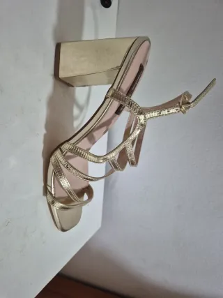 Sandalias de tacón doradas de Mango. Talla 42. Usadas una sola vez. Solo hago envíos.