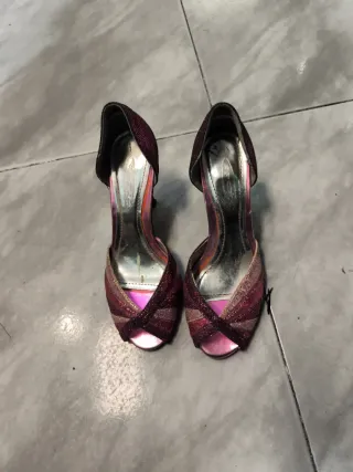 Zapatos Zara Morado y Plateado Brillantes