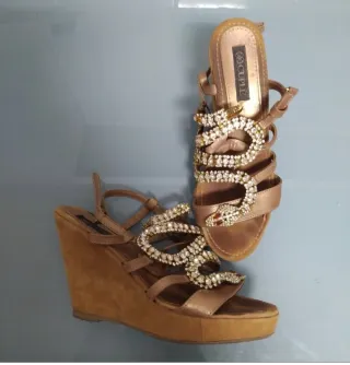 Sandalias doradas con pedrería de serpiente