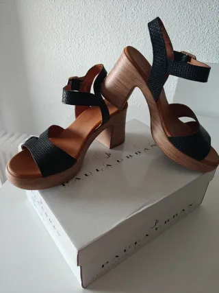 Vendo zapatos de tacón en color negro, con diseño moderno de tiras finas y puntera cuadrada. Son muy elegantes y estilizan muchísimo el pie. Tacón alto y estable. Usados muy pocas veces, en muy buen estado, sin desperfectos. Ideales para eventos, cenas, salir de noche o ocasiones especiales. 📦 Entrega en mano o envío 💬 Cualquier duda, pregúntame sin compromiso Altura del tacón: 12'5 cm