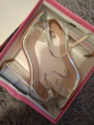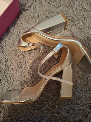 Zapatos de tacón del número 38 en color plata. Nuevo, sin uso.