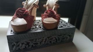 Zapatos - marrones cuña nuevos 15 -zapatos marrones tiras 1 vez usados 10 - zapatos negros tacon 1 vez 10 - zapatos azules altos 10 - zapatos blacos nuevos 10