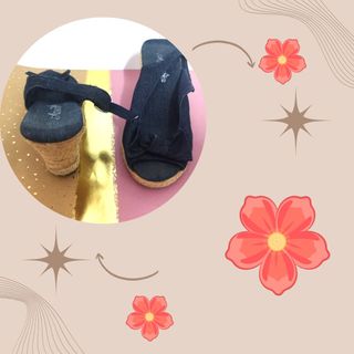 Sandalia de tela vaquera con cuña de esparto Marca : Azur Numero : 36 Medidas en ultima foto - Detalle de lazo en la puntera. - Suela de esparto.