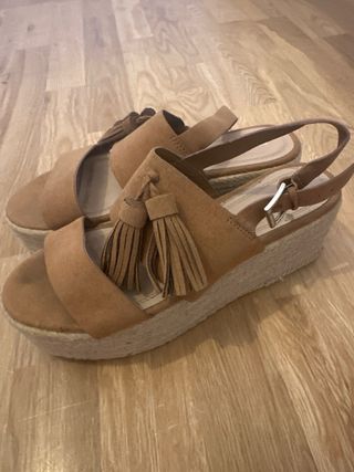 Sandalias de cuña con un diseño elegante y cómodo. - Material exterior de ante. - Detalle de hebilla metálica en la pala. - Correa de tobillo ajustable. - Plataforma forrada de esparto. Muy poco uso