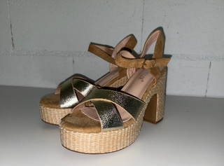 Tacones dorados cuña esparto Tallas 36 y 39