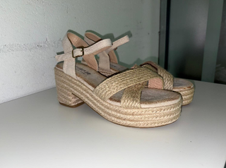 Sandalias esparto tacón beige Tallas 37,38,39