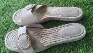 Sandalias planas de H&M en color beige, talla 37. Perfectas para el verano. Diseño muy original.Son cómodas y muy ponibles.Empeine de raso trenzado de crochet. - Diseño con tira trenzada. - Suela de esparto. (A título comparativo acompaño fotos de sandalias H&M, de diseños similares, con sus pv reales de venta en H&M)