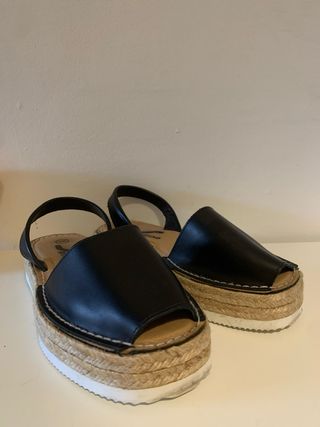 Sandalias Zara negras cuña esparto