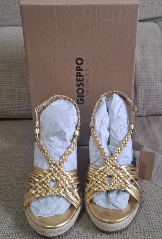 Sandalias doradas cuña esparto talla 38. FINDLAY