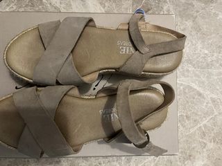 Elegantes sandalias de cuña con un diseño moderno. - Material exterior de ante. - Cierre de velcro en la tira del tobillo. - Plataforma y tacón forrados de esparto.