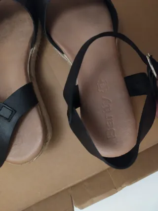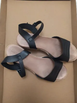 Sandalias negras con plataforma de esparto. De la marca mustang y talla 41. En buen estado. Precio 5€ Escucho ofertas No me hago cargo de los gastos de envío