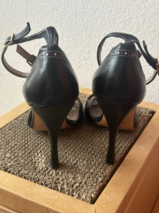 Usadas unicamente en tres ocasiones . Precio en tienda 219€. Les añadi spais par que no resbalase y no se dañase la suela . Pequeño tacon super comodo.