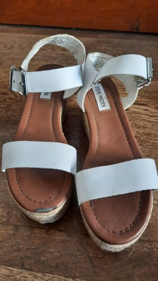 Sandalias de cuña altas de Steve Madden, color blanco, talla 38. ¡Vendo toda mi colección de Fly London! Visita mi perfil para saber más : )