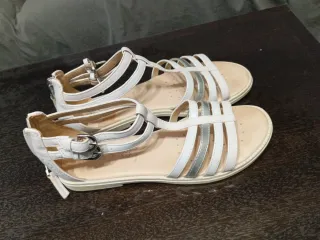 Sandalias Geox de estilo gladiador, perfectas para el verano. Casi sin usar - Diseño con tiras blancas y detalles plateados. - Cierre de hebilla ajustable. - Suela cómoda y transpirable.