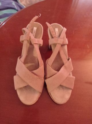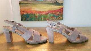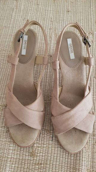 Sandalias GEOX en ante color beige, con tacón alto 7,5 cm. Número 37,5 Muy poco uso.