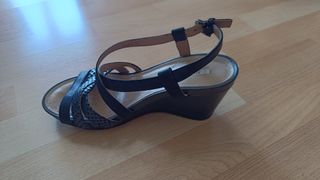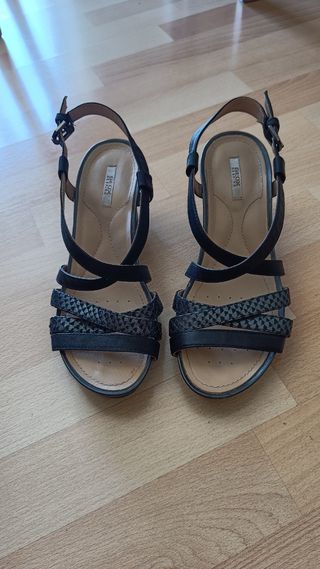Sandalias nuevas, marca GEOX. Negras de tiras cruzadas y tacón 6,5 cm en cuña