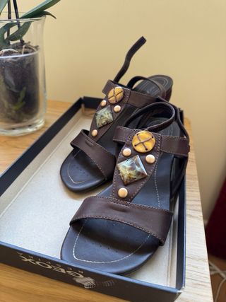 Sandalias Geox de mujer, color marrón. Son preciosas y están en perfecto estado. - Diseño elegante y cómodo. - Detalle de piedras decorativas. - Tacón bajo.
